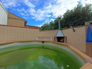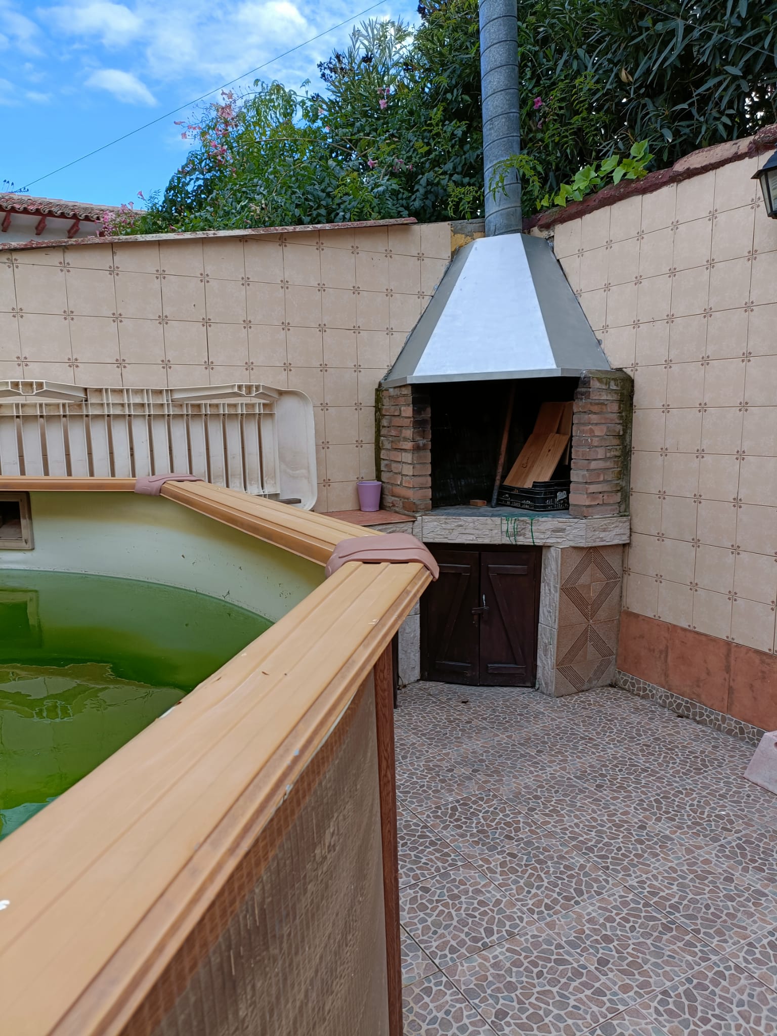 Barbacoa, piscina, garaje, fregadero exterior, trastero.